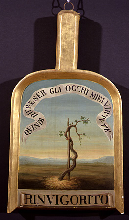 Motto: "Quindi ripreser gli occhi miei virtute", cfr. Dante, "Commedia", "Par." XIV, 82. Impresa: Vite con paglione alle barbe (approvata il 18 agosto 1690).
